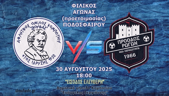 🔹 Με πρώτο “δυνατό” φιλικό προπονητικού χαρακτήρα, ξεκινάει την προετοιμασία του ο «Α. Ο. Κομποτίου ο ΣΚΟΥΦΑΣ», αντιμετωπίζοντας την φετινή πρωταθλήτρια ΕΠΣ Άρτας «Πρόοδο Ρωγών».